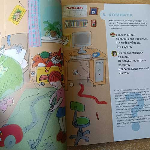 Autores: Protasova, Ekaterina; Jlebnikova, Vera. "Al circo!". LIBRO NUEVO. Tamaño grande: 20,5x26 cm. Ilustraciones a todo color. 184 pp. Una de las mejores editoriales rusas especializada en el ruso como lengua extranjera. Un libro para que un niño que crezca fuera de Rusia aprenda el ruso con sus padres o con un maestro, solo o en grupo. Destinado a los niños que acaben de aprender el alfabeto y empiecen a escribir un poco. Con este libro pueden aplicar sus conocimientos en la práctica. Hablar, leer y escribir en ruso les ayuda una historia sobre un circo itinerante con animales.