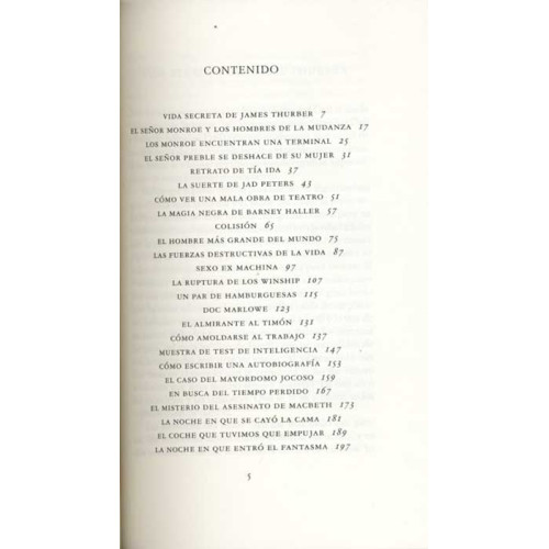 Buen estado, exlibris del propietario anterior. 204 p. Tapa blanda con solapas. Colección de cuentos de James Thurber (1894-1961), dibujante, escritor y periodista, colaborador durante muchos años en The New Yorker. Traducción del inglés de Celia Filipetto.Título original: The secret life of James Thurber.